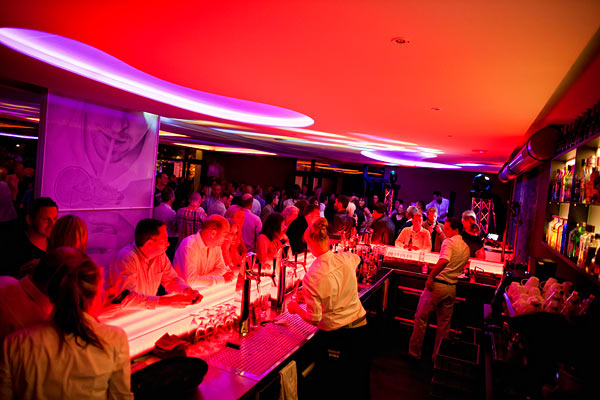 Im Partyfieber rückt die Bar in den Mittelpunkt, der Hauptbereich wird zur Tanzfläche und der Wintergarten zur Chillout-Area.
